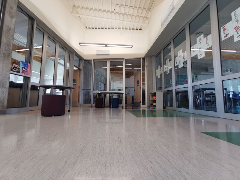 Greeting all students, staff and visitors, the two-storey curtainwall defines the school’s main entry foyer. Jenna, a Grade 7 student at Edgewood Elementary, highlighted the importance of the curtainwall and windows to her “because on sunny days they make the school feel big and happy.”